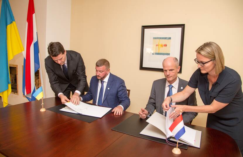 Signing of the Treaty of Tallinn by Dutch MFA Stef Blok (on the right) and the Ukranian MFA. Standing on the left is Michael Pistecky.